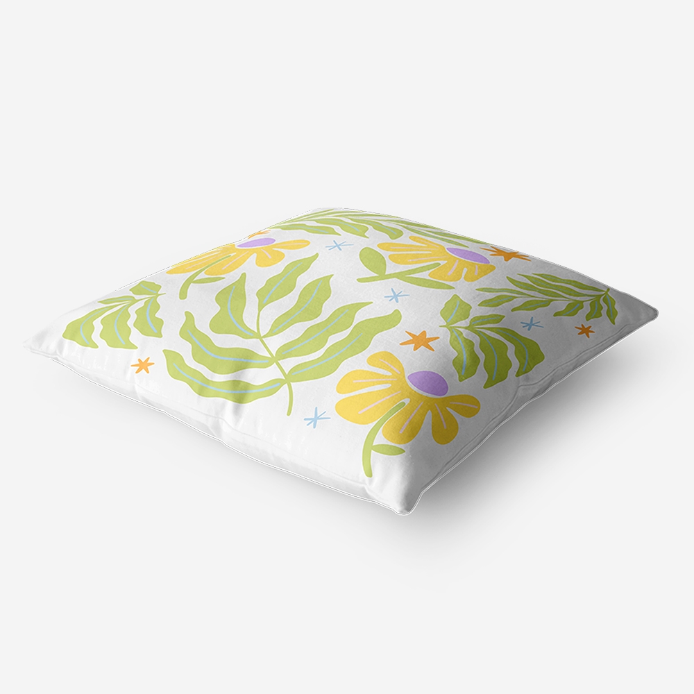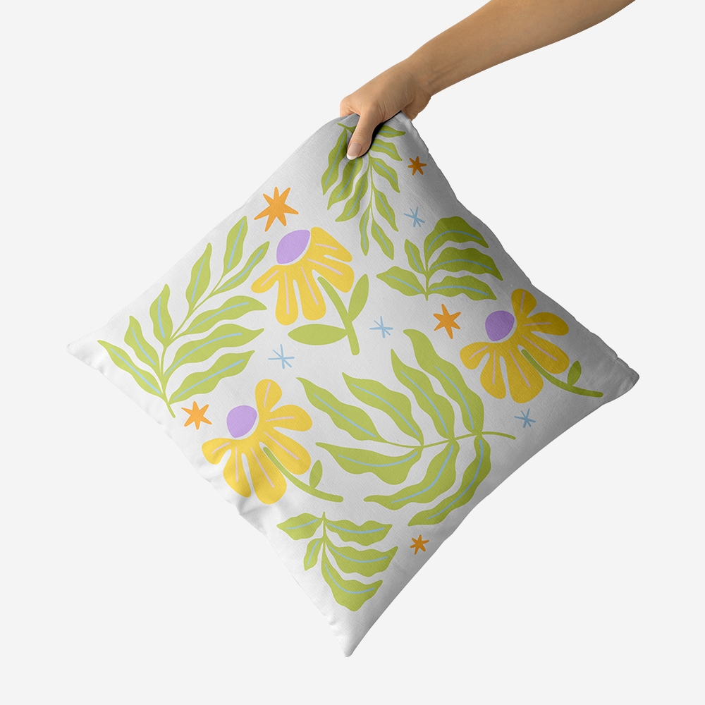 Quem disse que a decoração tem de ser aborrecida? Com folhagens verdes e flores num amarelo vibrante, esta peça é o truque mais rápido para dares cor à tua casa sem esforço. Uma almofada cheia de pinta para aqueles momentos em que o plano é só não fazer nada.
