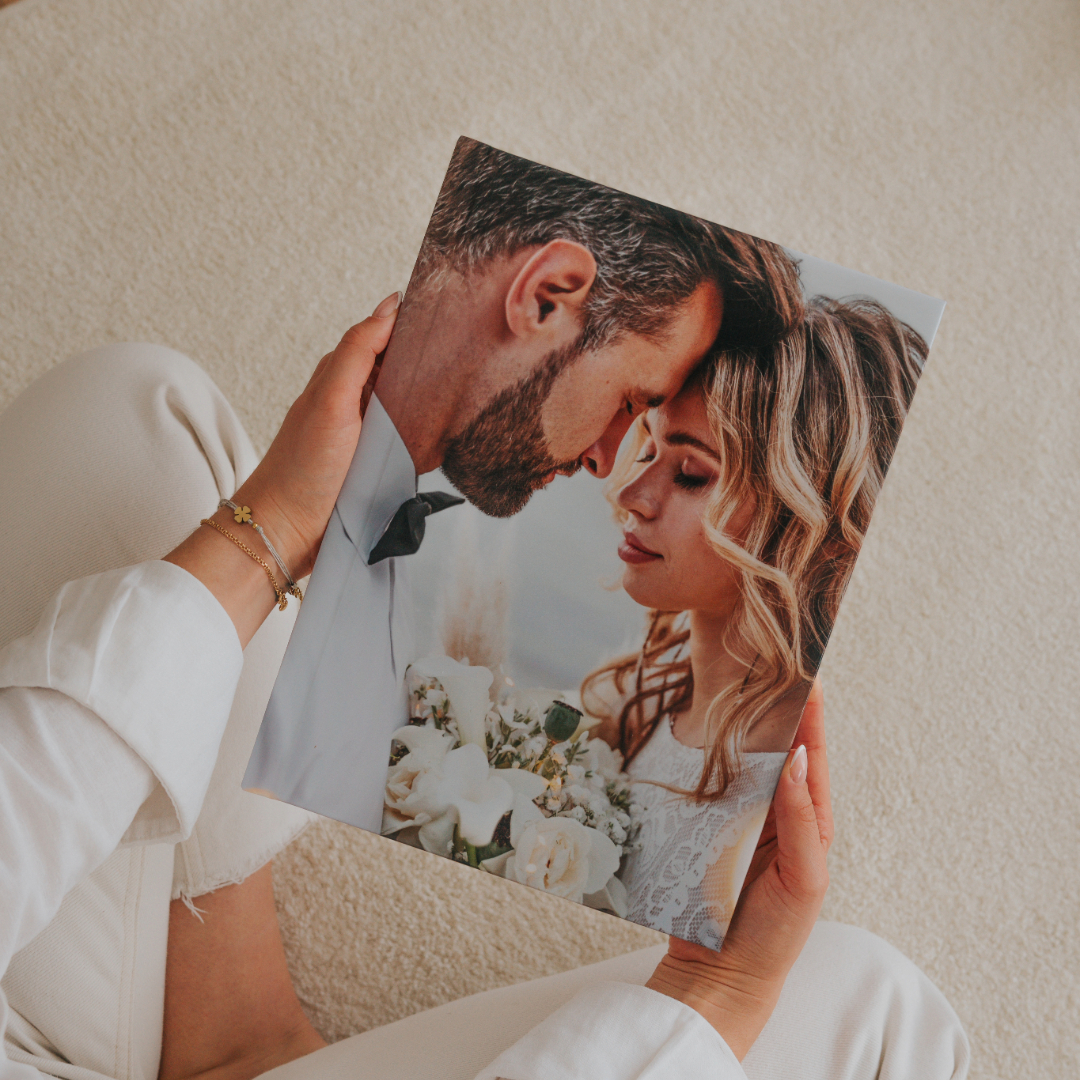 Uma box para guardar o álbum de casamento não só irá proteger o teu álbum de danos como também irá adicionar um toque especial na apresentação. Adiciona à box os vossos nomes, data do casamento ou até mesmo uma frase especial, tornando a tua box única e significativa.